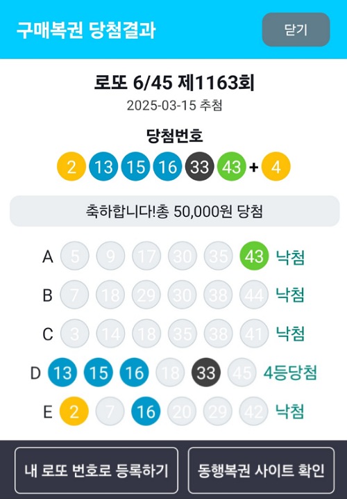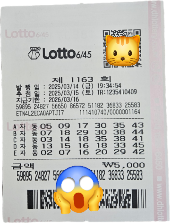지난주 동네 붕어빵 판매점에서 5천원어치 로또를 구매하였다.