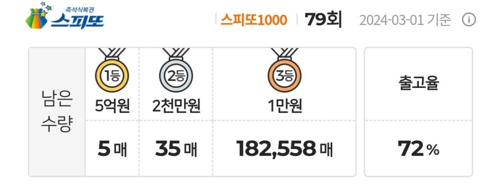 스피또1000 79회 출고율(판매점 입고율) / 스피또1000 79회 당첨현황(2024.03.01 기준)