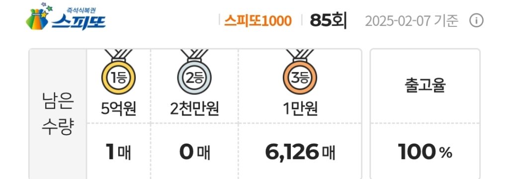 제 85회 스피또1000 판매기간 2025년 2월 28일까지 입니다.
