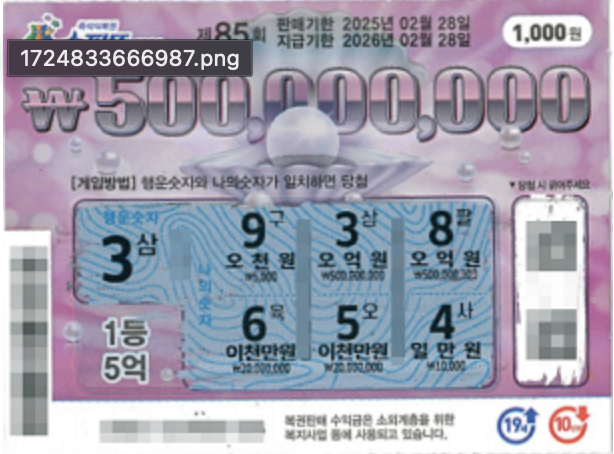 | 85 | 1 | 500,000,000 | 2024.08.28 | 다온복권방 |