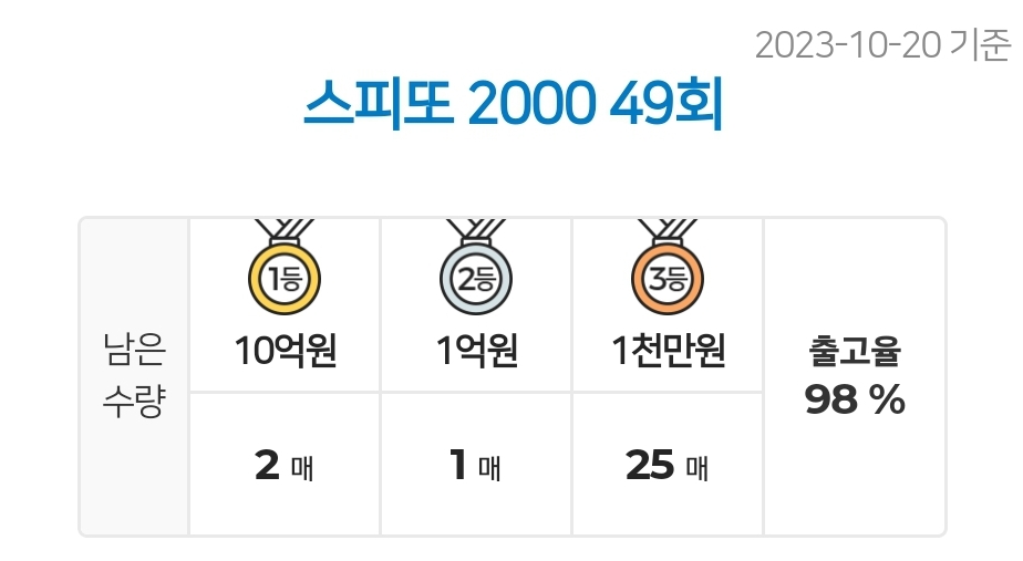 - 스피또2000 49회 출고율 / 스피또2000 49회 당첨현황(2023.10.20 기준)