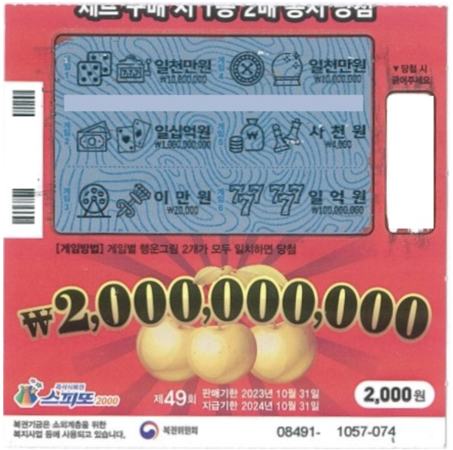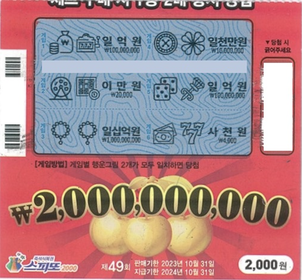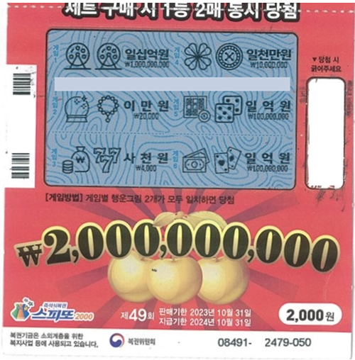 49회 스피또2000 복권 1등 당첨을 기원합니다.