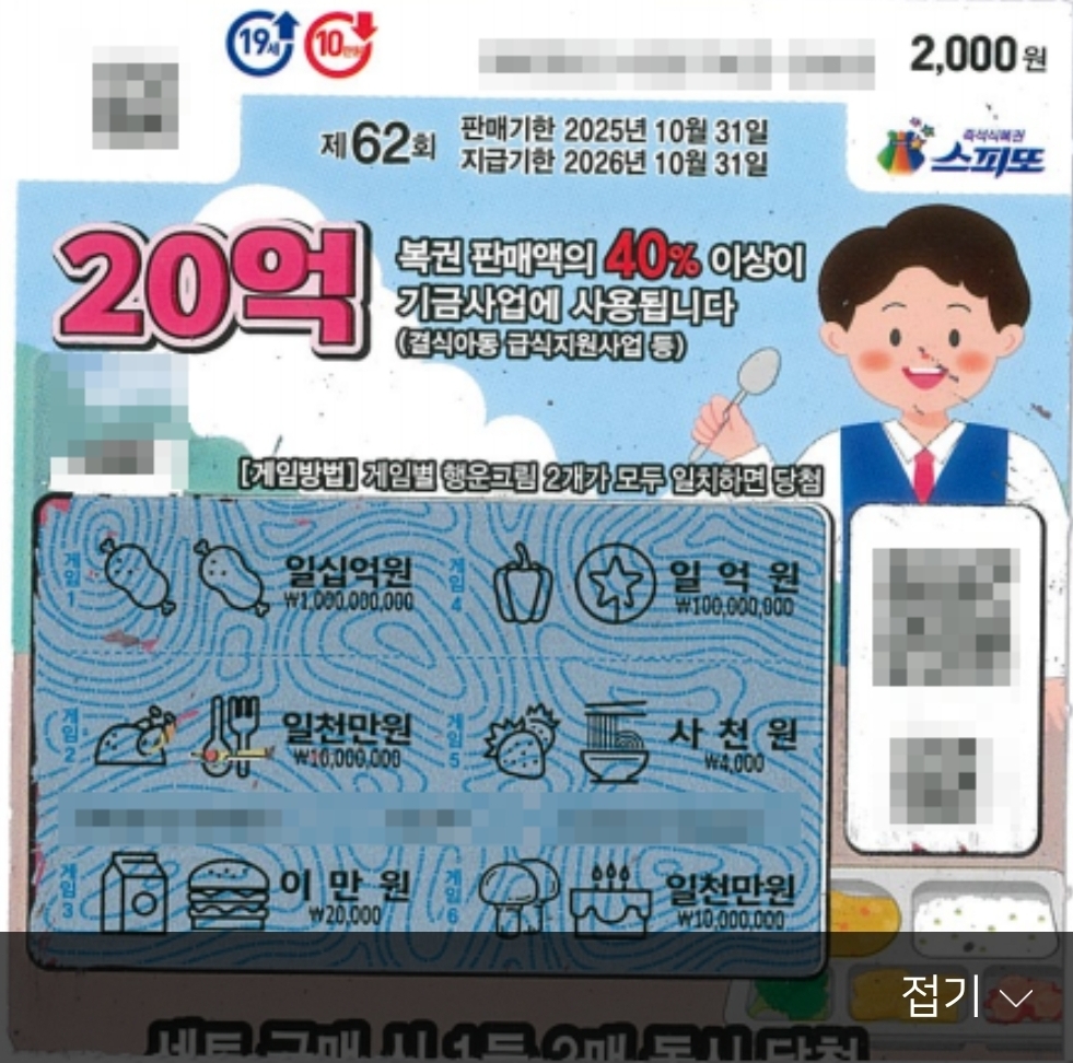 제 62회 스피또2000 판매기간은 2025년 10월 31일까지입니다.