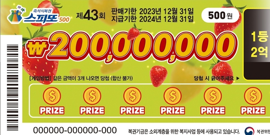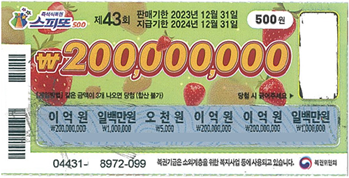 43회 스피또500 복권 1등 당첨을 기원합니다.