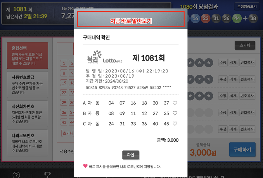 1080회 로또 3매!! 1등을 꿈꾸며!! 이글이 성지가 되길!!