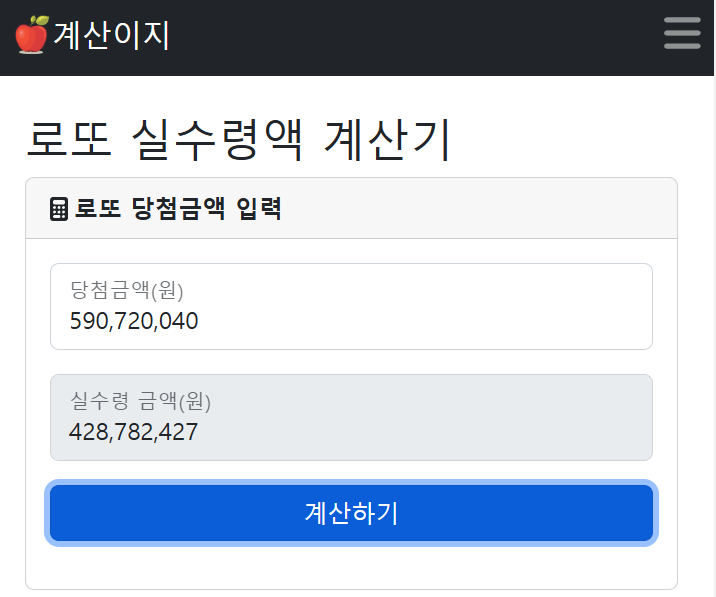 로또 실수령액 계산기로 계산해보니, 약 4억 2천 9백만원입니다.