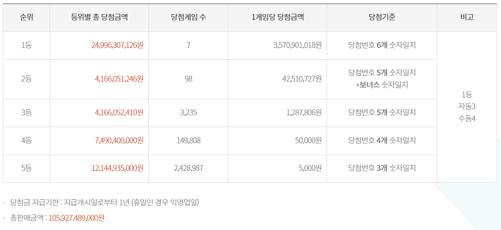 - 추첨일 오후 8시부터 다음날(일요일) 오전 6시까지는 판매가 정지됩니다.