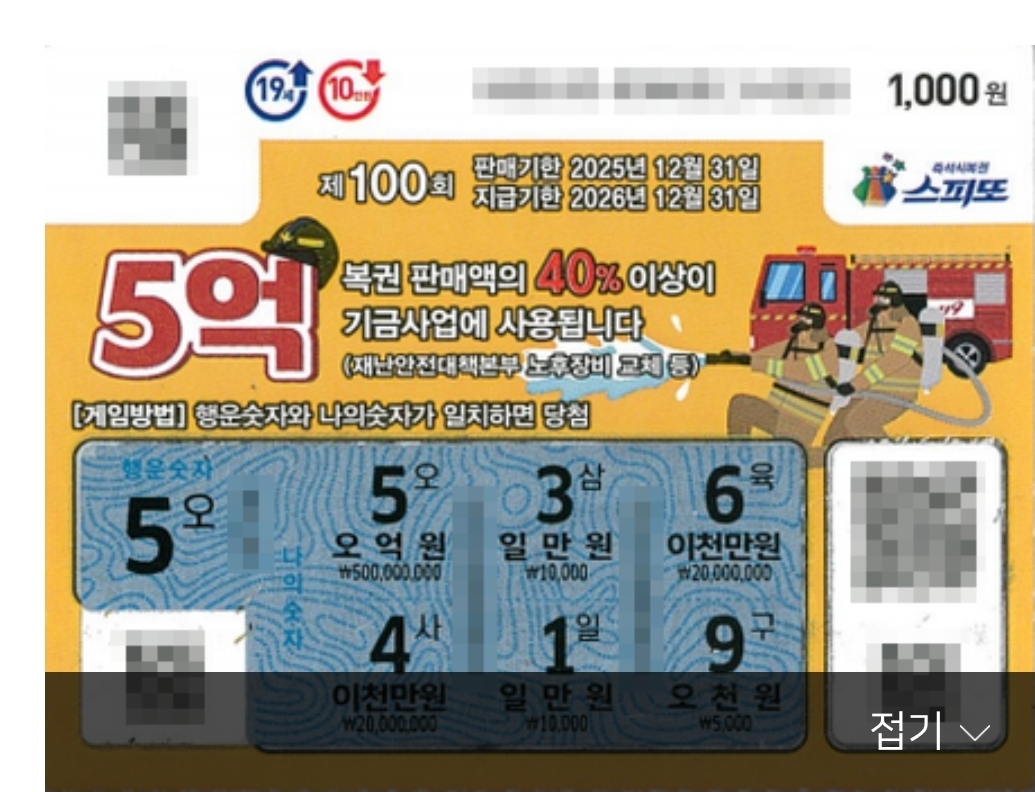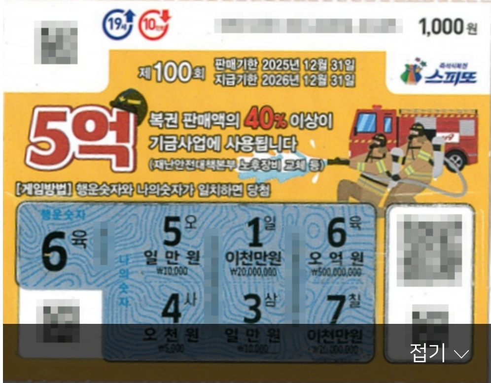 1등 당첨 복권 실물 보고 기운받아가세요