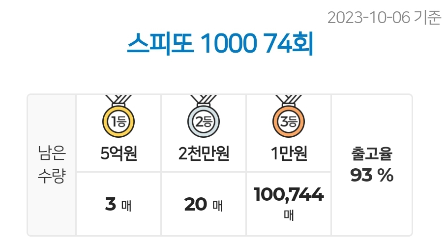 - 스피또1000 74회 출고율 / 스피또1000 74회 당첨현황(2023.10.06 기준)