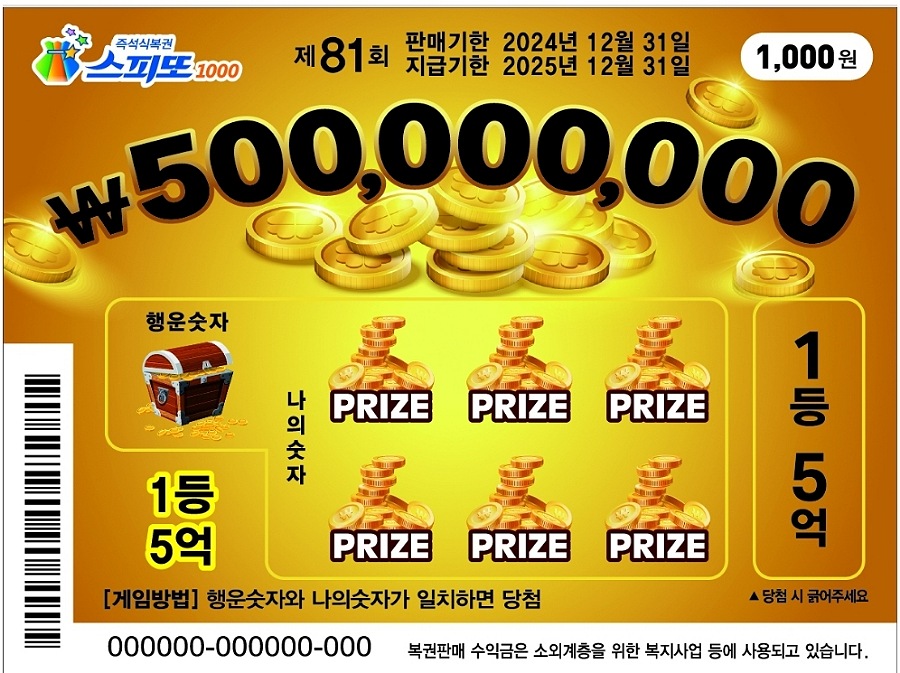 제 81회 스피또1000 판매기간 2024년 12월 31일까지 입니다.