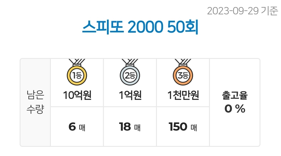 - 스피또2000 50회 출고율 / 스피또2000 50회 당첨현황(2023.9.29 기준)