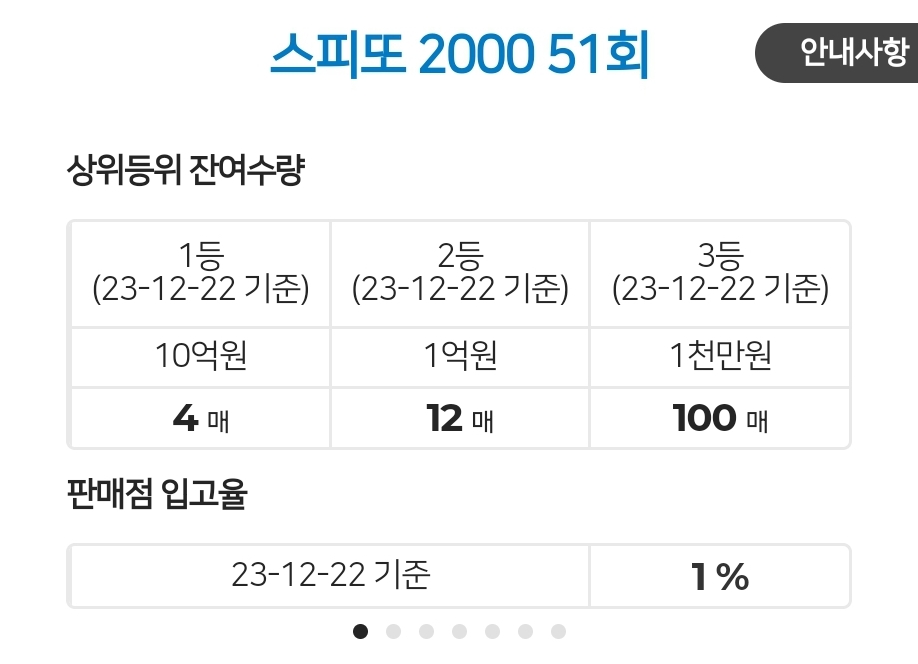 스피또2000 51회 출고율(판매점 입고율) / 스피또2000 51회 당첨현황(2023.12.22 기준)