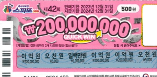 | 42 | 1 | 200,000,000 | 2023.01.30 | 명당골복권방 |