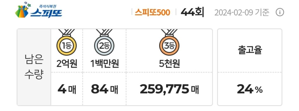 (2023.12.08기준) 스피또500 44회 출고율 / 스피또500 44회 당첨현황