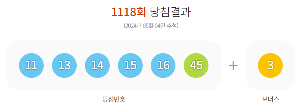 1118회 당첨 로또 번호 및 당첨금액 및 당첨 게임 안내