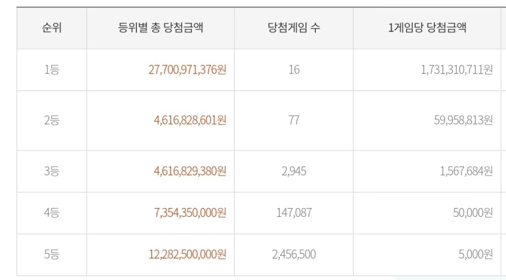 | 1등 | 1,731,310,711원 | 1,192,978,177원 |
