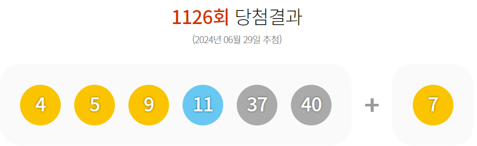 로또 1126회 당첨 번호 및 당첨금액 및 당첨 게임 안내