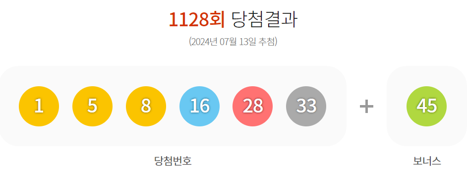 로또 1128회 당첨 번호 및 당첨금액 및 당첨 게임 안내