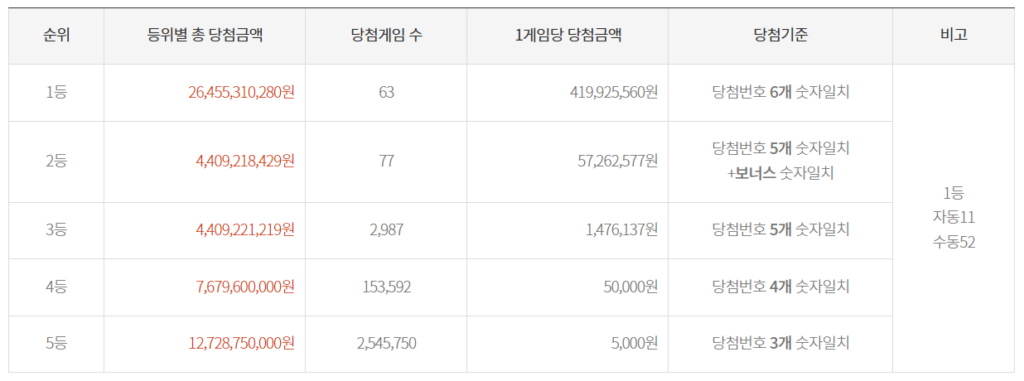 | 1등 | 419,925,560원 | 314,350,126원 |