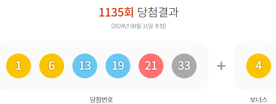 로또 1135회 당첨 번호 및 당첨금액 및 당첨 게임 안내