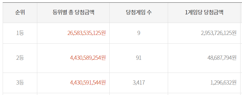 | 1등 | 2,953,726,125원 | 2,011,996,504원 |