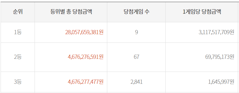 | 1등 | 3,117,517,709원 | 2,121,736,866원 |