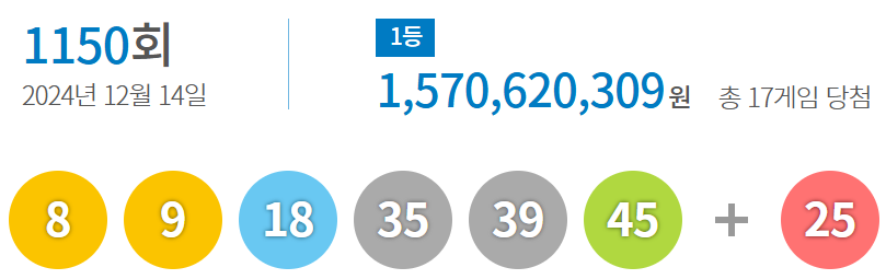 로또 1150회 당첨 번호 및 당첨금액 및 당첨 게임 안내