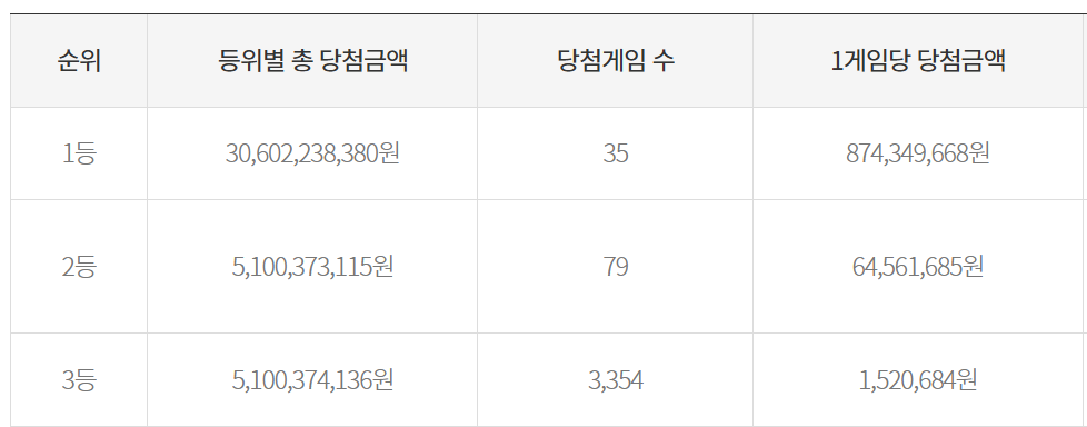 | 1등 | 874,349,668원 | 618,814,278원 |