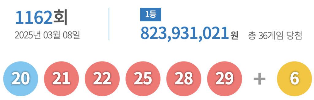 로또 1162회 당첨 발표일은 2025년 3월 8일 토요일입니다.