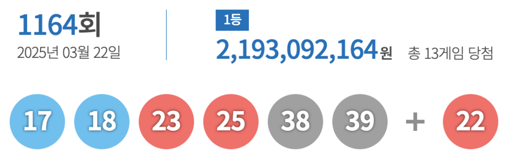 로또 1164회 당첨 발표일은 2025년 3월 22일 토요일입니다.