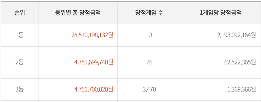 | 1등 | 2,193,092,164원 | 1,502,371,750원 |