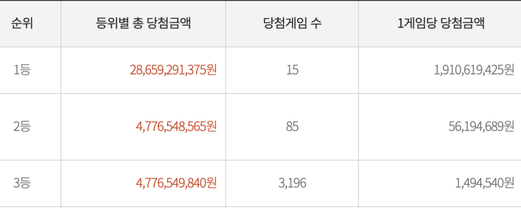| 1등 | 1,910,619,425원 | 1,313,115,015원 |