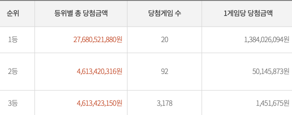 | 1등 | 1,384,026,094원 | 960,297,483원 |