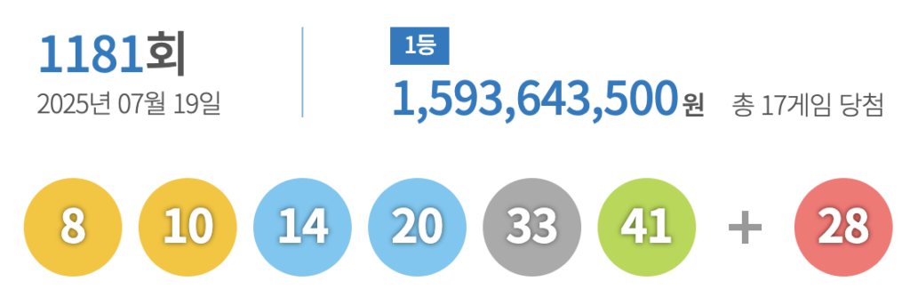 1181회 로또 당첨번호 및 당첨금