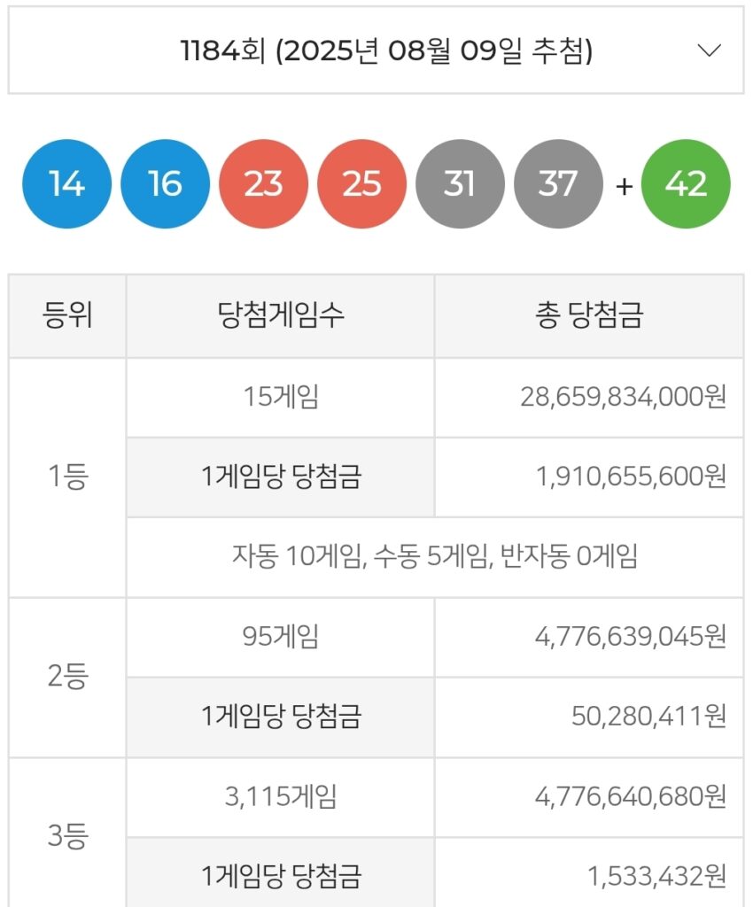 1등 당첨 게임의 수동, 자동, 반자동별 게임수 는 아래쪽에 1등 당첨 판매점 목록을 참고하세요.
