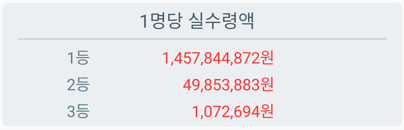 957회 로또 1등, 2등,3등 당첨 실수령액