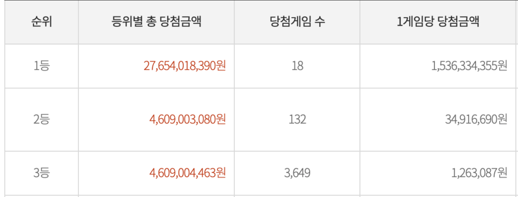 순위 당첨금액 실수령액 1등 1,536,334,355원 1,062,344,018원 2등 34,916,690원 27,235,019원 3등 1,263,087원 1,263,087원