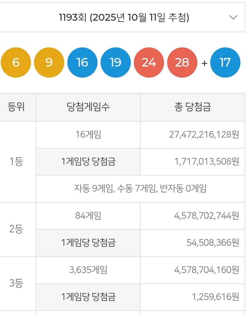| 1등 | 1,717,013,508원 | 1,183,399,051원 |