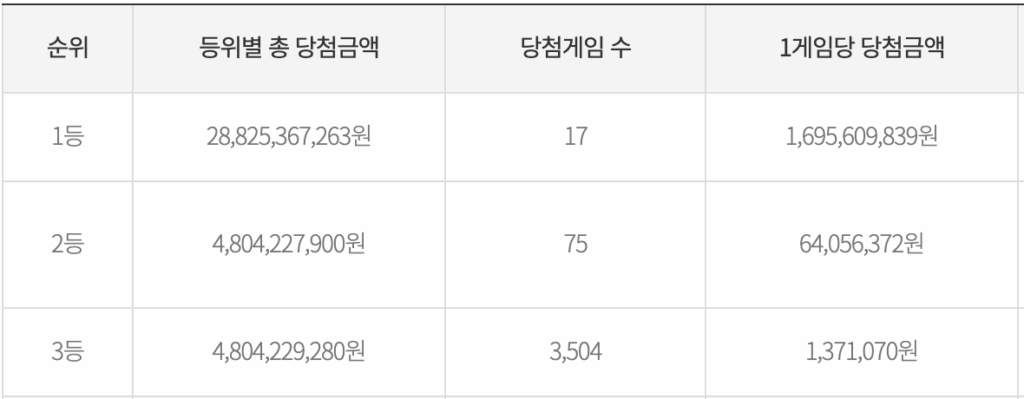 | 1등 | 1,695,609,839원 | 1,169,058,593원 |