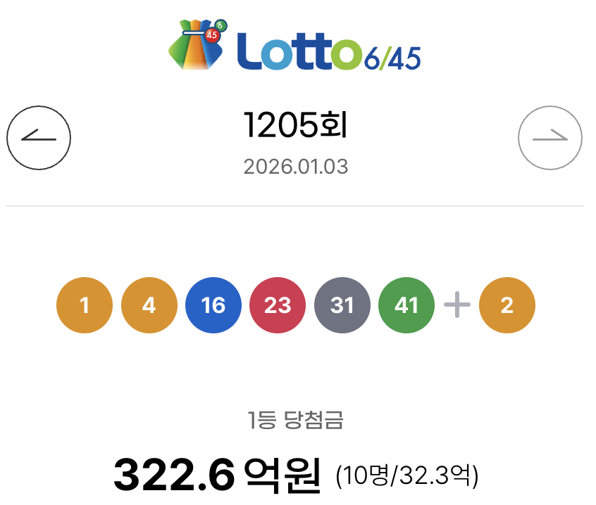 1205회 로또 당첨번호 및 당첨금