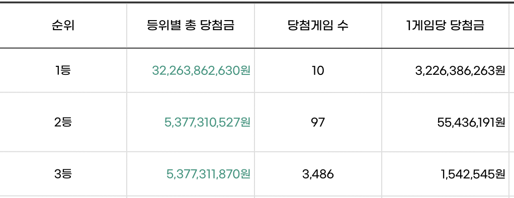 | 1등 | 3,226,386,263원 | 2,194,678,797원 |