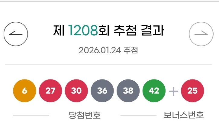 로또 1208회 당첨번호 및 당첨금 실수령액