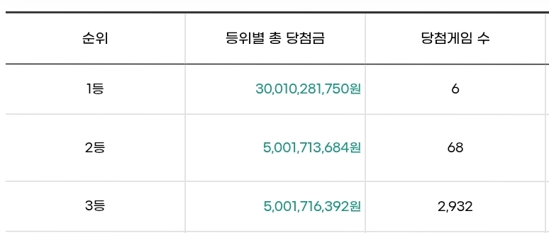 | 순위 | 당첨금액 | 실수령액 |