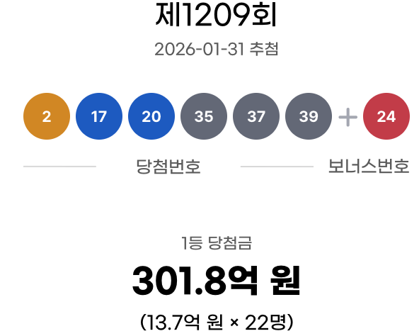로또 1209회 당첨번호 및 당첨금 실수령액