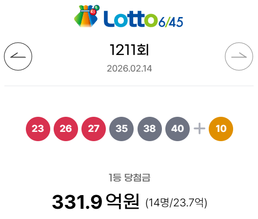 로또 1211회 당첨번호 및 당첨금 실수령액