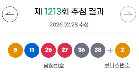 로또 1213회 당첨번호 및 당첨금 실수령액