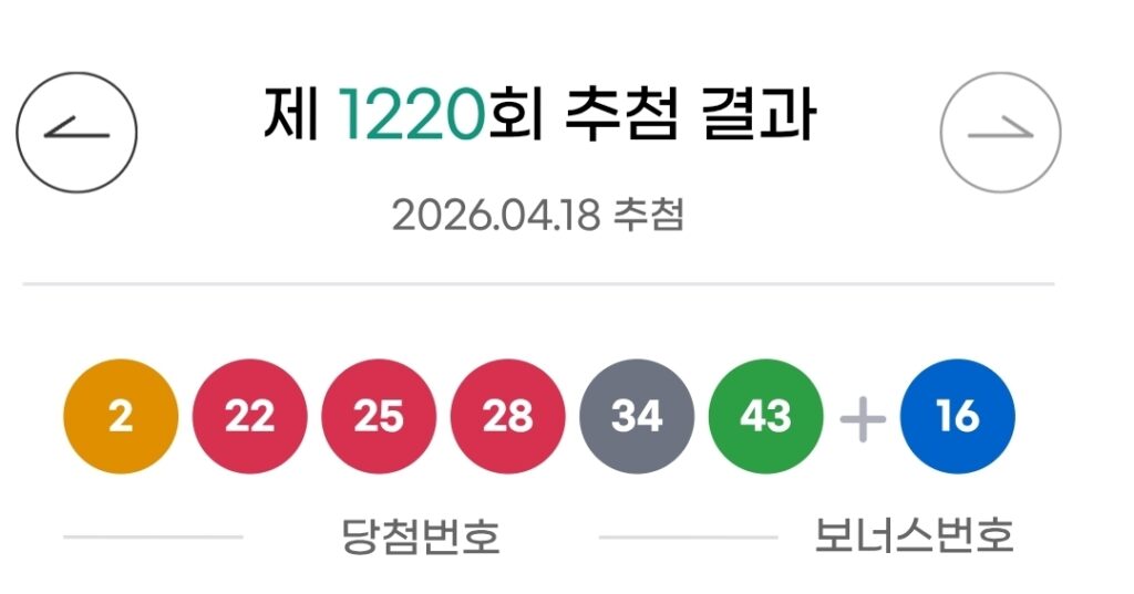 로또 1220회 당첨번호 및 당첨금 실수령액
