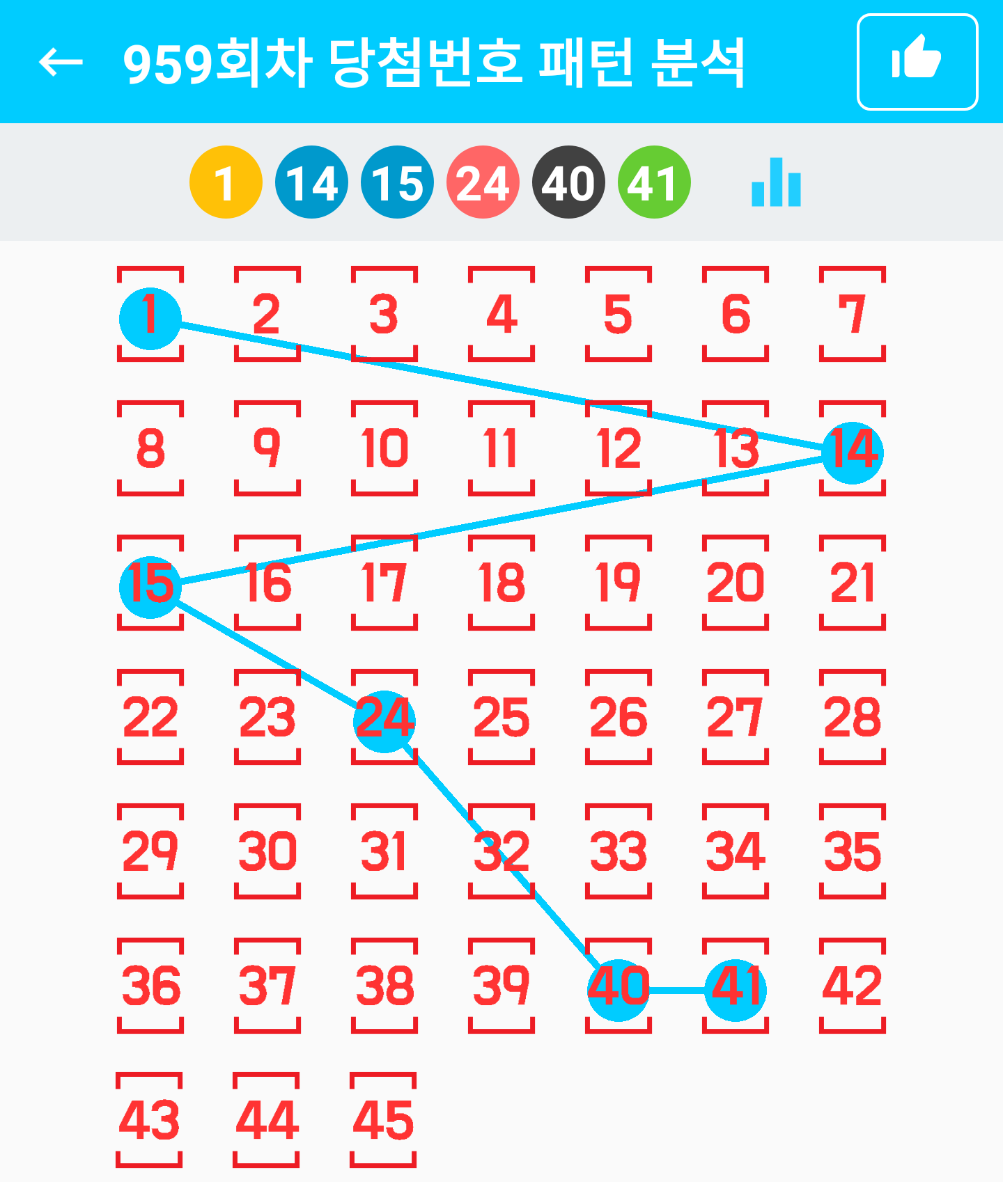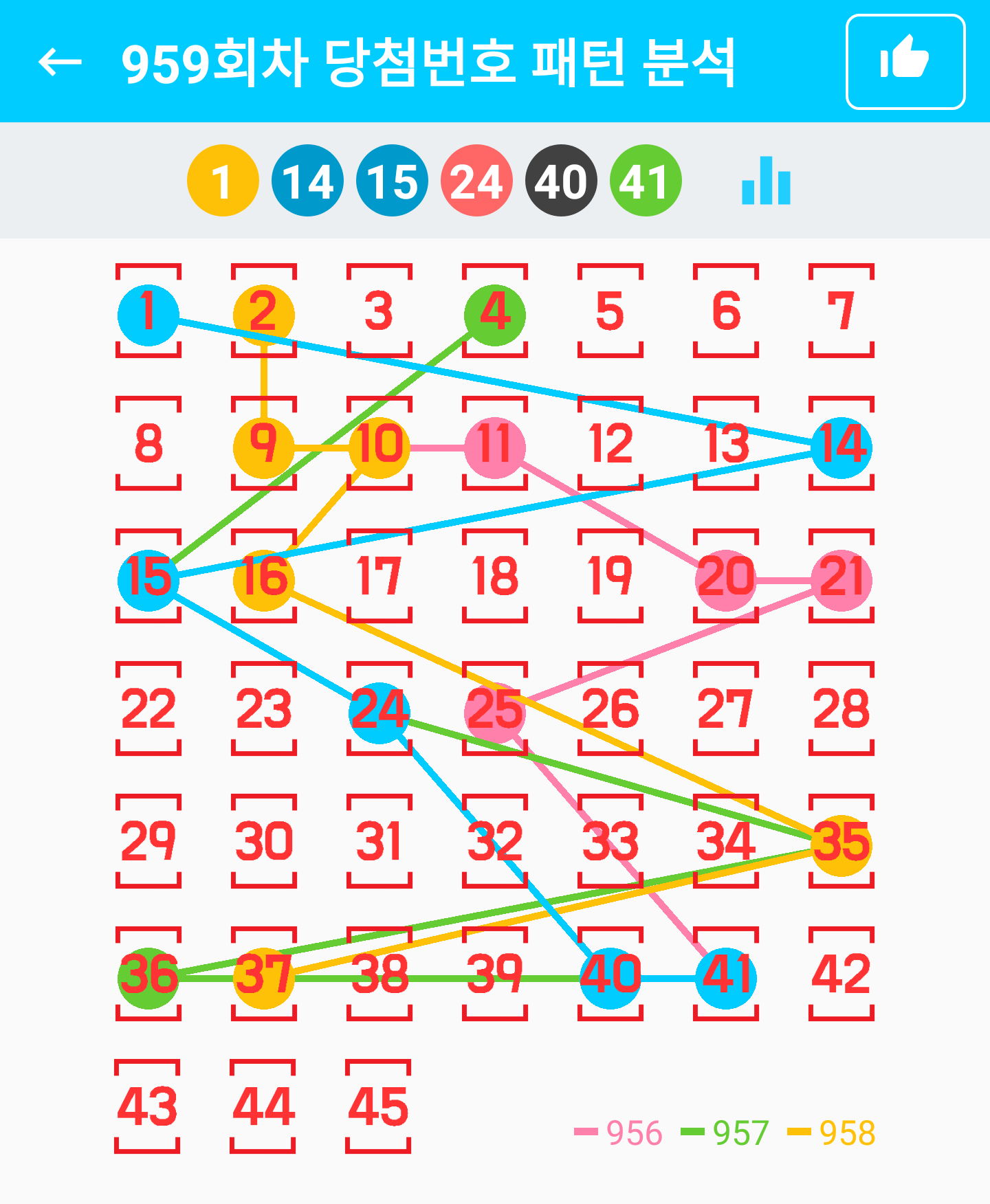 959 1, 14, 15, 24, 40, 41 + 35 홀:짝 (3:3)