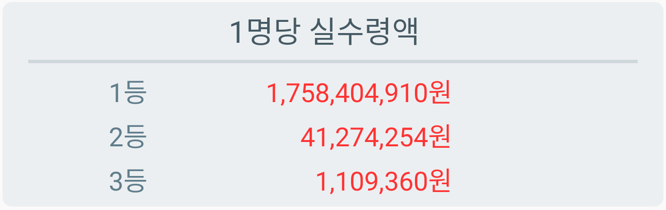 | 순위 | 당첨게임 수 | 1게임당 당첨금액 |