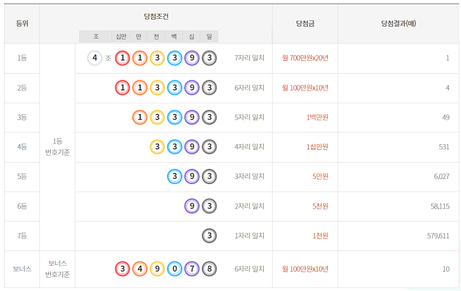 - 연금복권 2등 당첨자와 보너스 번호 당첨자는 매달 100만원을 10년간 연금식으로 받게 됩니다.